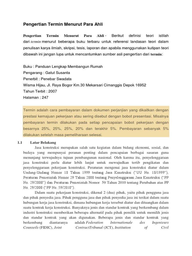 Pengertian Termin Menurut Para Ahli