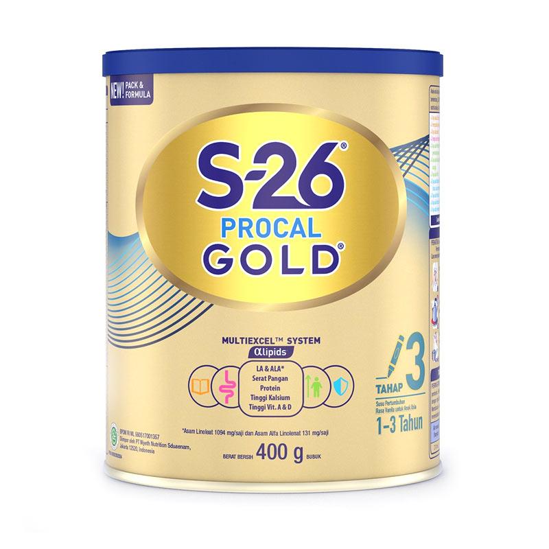 S-26 promil gold Susu formula lanjutan untuk bayi usia 6-12 bulan rasa vanilla kaleng 800g. Secara komposisi kandungan tidak banyak perbedaan susu S26 dengan S26 Gold. Susu S26 tahap 3 dikenal dengan nama S26 ProcalS26 Procal Gold dan ditujukan untuk anak usia 1-3 tahun.