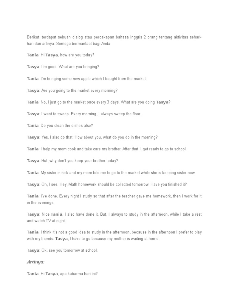 Teks Dialog Bahasa Inggris 2 Orang Singkat Berbagai Teks Penting