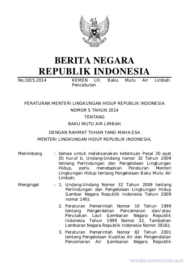 Peraturan Menteri Lingkungan Hidup Republik Indonesia Nomor 5 Tahun 2014 Waterpedia