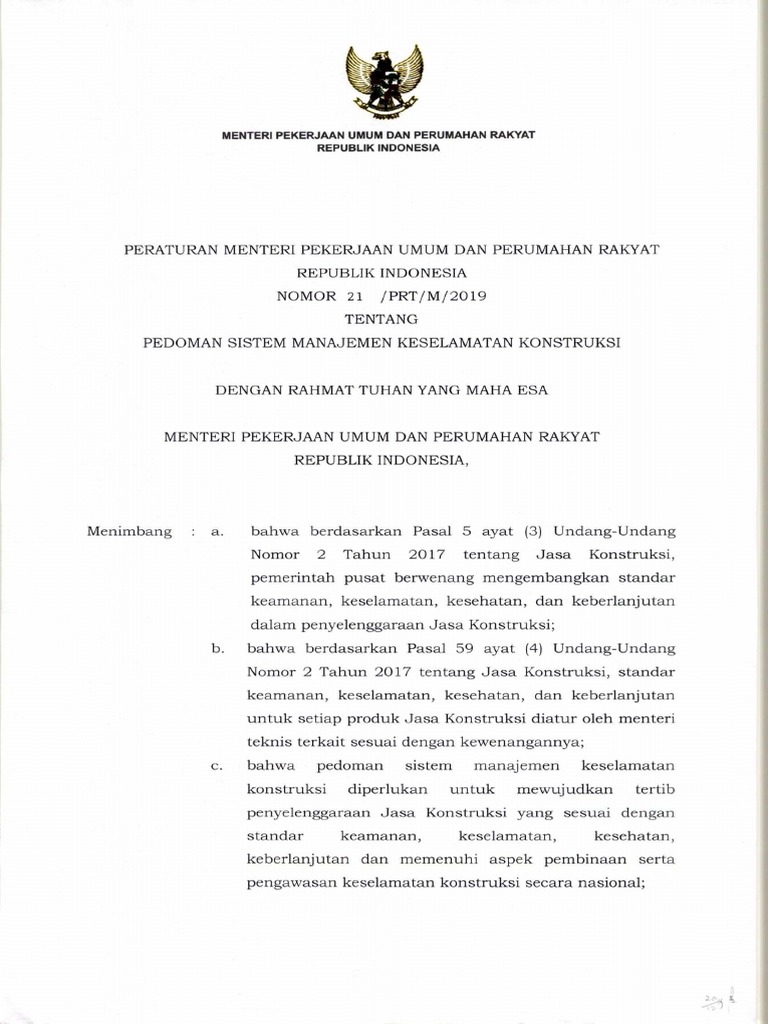 01a Permen Pupr No 21 Tahun 2019 Tentang Pedoman Smkk Batang Tubuh Pdf