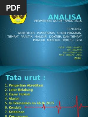 Pmk No 46 Ttg Akreditasi Puskesmas Klinik Pratama Tempat Praktik