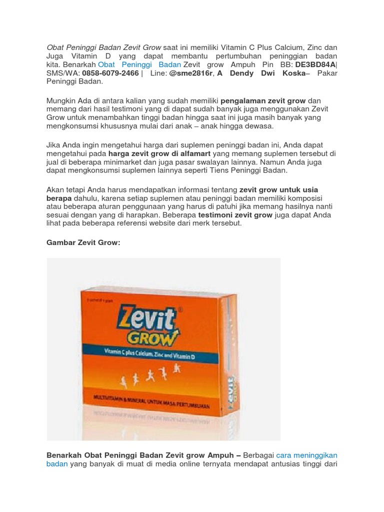 Atau membeli Zevit Grow kemasan. Maka dari itu disini akan diterangkan mengenai testimoni pengalaman minum obat peninggi badan zevit grow. Bila anda berminat membeli suplemen ini dapat mengikuti petunjuk berikut.