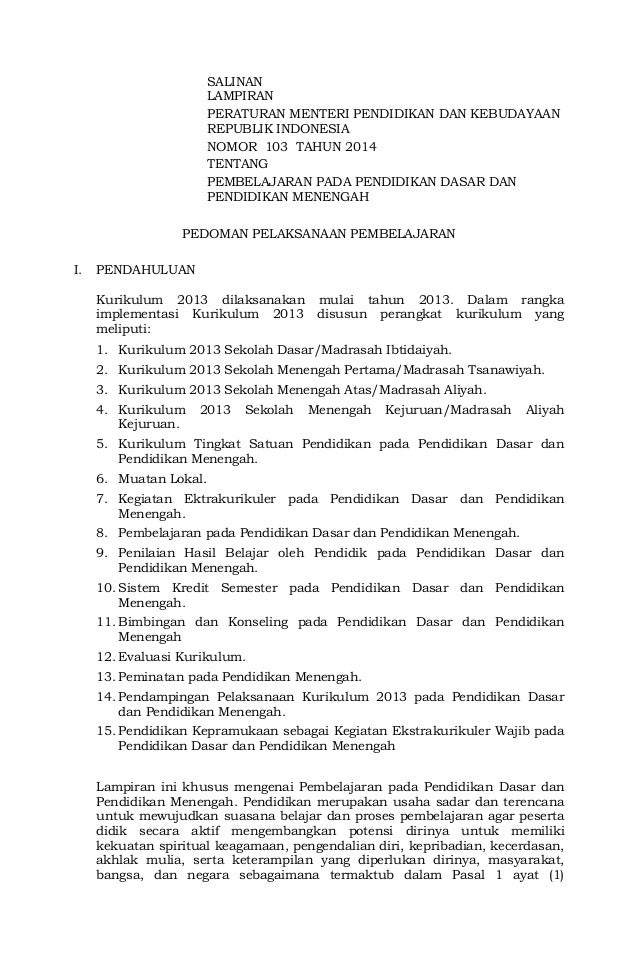 Permendikbud No 103 Tahun 2014 Tentang Pembelajaran Pada Pendidikan Dasar Dan Menengah Ansar Langnge