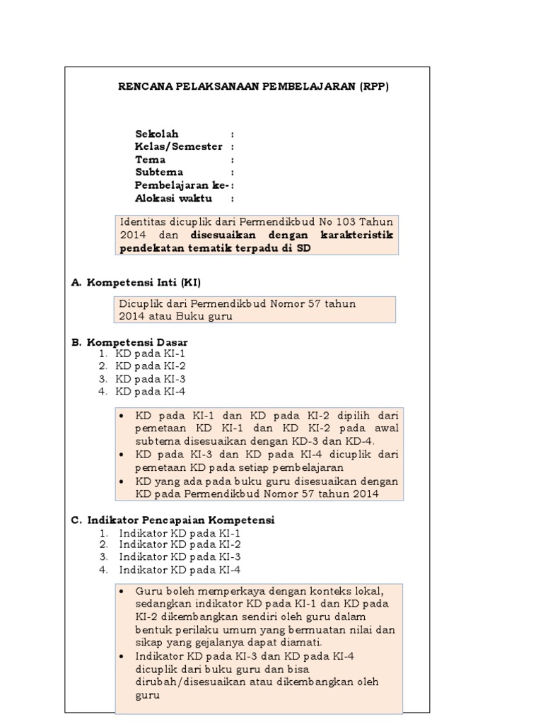 Format Rpp Terbaru Berdasarkan Permendikbud Nomor 103 Tahun 2014 Pustaka Pandani