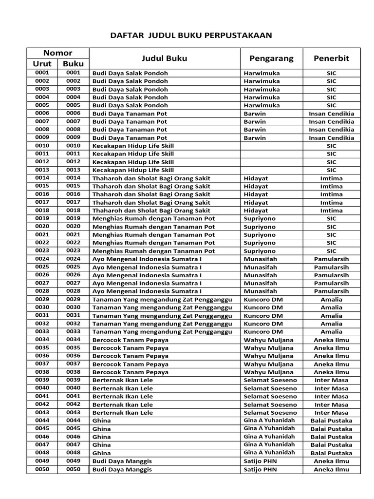 Daftar Judul Buku Perpustakaan