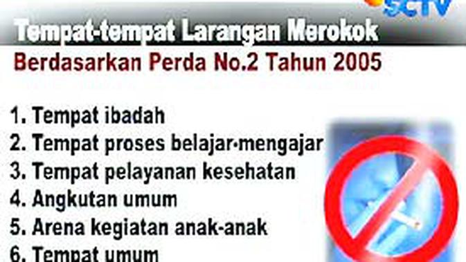 Bahkan larangan juga diberlakukan didalam angkutan umum. Peraturan Daerah PERDA TENTANG Kawasan Tanpa Rokok. NOMOR 2 TAHUN 2005 TENTANG PENGENDALIAN PENCEMARAN UDARA DENGAN RAHMAT TUHAN YANG MAHA ESA GUBERNUR PROVINSI DAERAH KHUSUS IBUKOTA JAKARTA Menimbang.