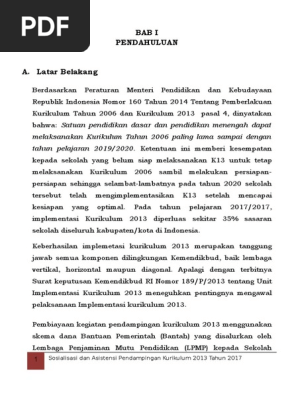 Laporan pendampingan kurikulum 2013 tahun 2017. Selanjutnya disebutkan bahwa Bantuan Pemerintah Pendampingan Kurikulum 2013 adalah dana bantuan. BAHASA INGGRIS KEMENTERIAN PENDIDIKAN DAN KEBUDAYAAN DIREKTORAT JENDERAL PENDIDIKAN DASAR DIREKTORAT PEMBINAAN SMP 2013 LEMBAR PENGESAHAN Laporan. Berbagai perkembangan dan revisi-revisi tekhnis pelaksanaan sudah mewarnai kegiatan ini.