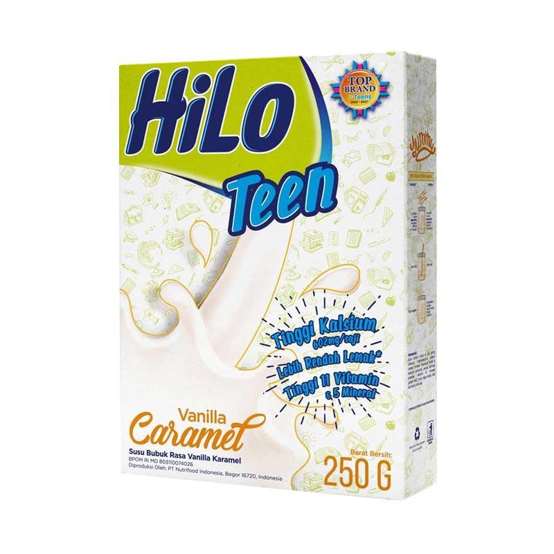 Susu Hilo teen ini mengandung vitamin Avitamin B vitamin C vitamin D vitamin E kalsium fosfor mineral kalium dan masih banyak lagi. Kelebihan dan Manfaat susu Hilo Teen. HiLo Teen Vanilla Caramel merupakan susu tinggi kalsium dan rendah lemak yang baik untuk pertumbuhan tulang remaja.