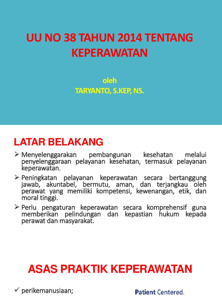 Uu No 38 Tahun 2014 Tentang Keperawatan - Analisa Undang-Undang No38 Tahun 2014 Tentang Keperawatan. SALINAN UNDANG-UNDANG REPUBLIK INDONESIA NOMOR 38 TAHUN 2014 TENTANG KEPERAWATAN DENGAN RAHMAT TUHAN YANG MAHA ESA PRESIDEN REPUBLIK INDONESIA Menimbang.
