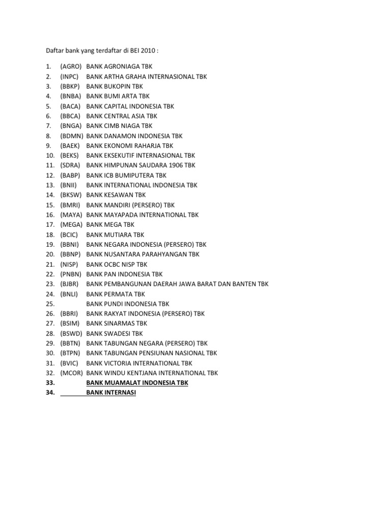 45 แถว Itulah pemaparan daftar perusahaan perbankan yang terdaftar di BEI tahun. Adapun beberapa saham yang terdaftar yaitu. PT Bank Negara Indonesia Persero Tbk.