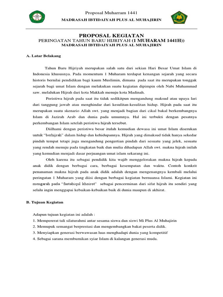 Doc Contoh Proposal Kegiatan Tahun Baru Hijriyah Haedar Algazali Academia Edu