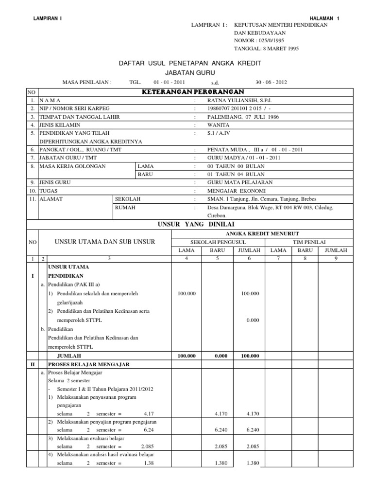 20 Penetapan Angka Kredit Guru Info Dana Tunai