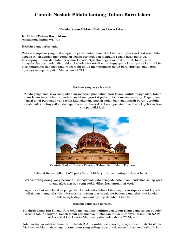 Bahasa arab yang dilatinkan. Untuk tahun ini umat Muslim akan merayakan Tahun baru Islam 1442 Hijriah pada 20 Agustus 2020. Misalnya kita membuat pidato dengan judul tahun baru Islam contoh naskah pidato ini bisa dibawakan oleh anak sekolah dna bisa dibacakan dalam acara keagamaan.