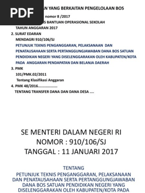 Edaran Mendagri Perihal Juknis Penganggaran Pelaksanaan Dan Penatausahaan Serta Pertanggungjawaban Dana Bos Sch Paperplane